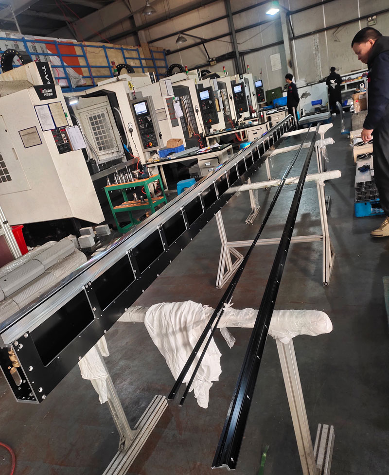 一、 切割。這是基礎的加工服務,也是簡單的加工操作,最但是需要保障切割的精度,而且切割端面需要保障沒有毛刺,一般型材6米長,可以根據框架的需求來切割不同的尺寸。
