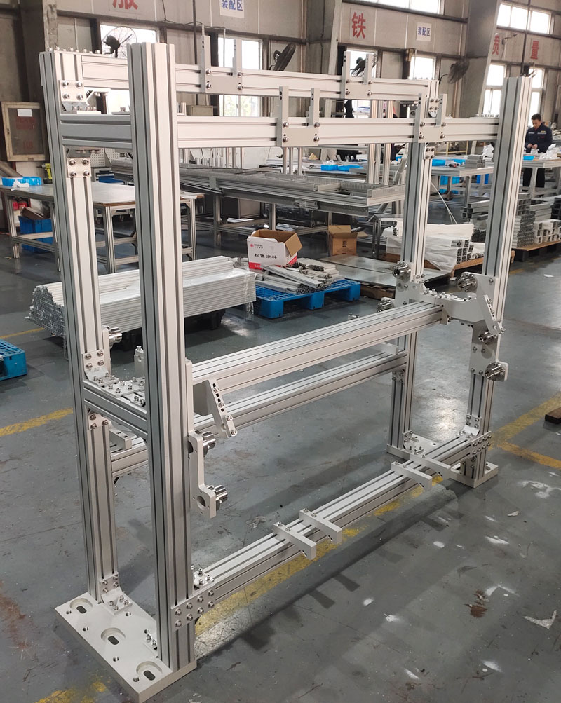 鋁型材框架搭建方法大致分成兩種,一種是按照圖紙,遵循主要結構先組裝,次要部分后增加的規(guī)律;另外一種如果搭建大型設備框架的話,需要遵循從下往上組裝的方法;這兩種方法不同之處就是型材組裝方向的不同,方法都是一樣的,都是要用到配件連接。