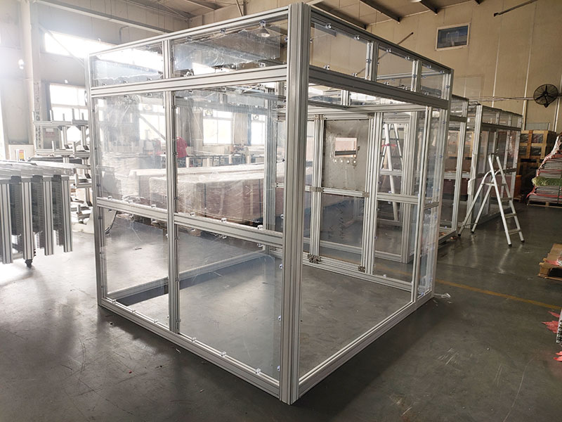 鋁型材設備防護罩相對于鐵藝圍欄產品優勢明顯,且產品可選擇性強,便于施工組裝,產品性能穩定,且便于后期的維護,可以為企業節省成本的投入;